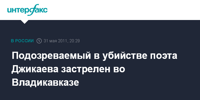 Владикавказ. 31 мая. INTERFAX.RU - В ходе спецоперации во Владикавказе ликвидирован предполагаемый убийца осетинского народного поэта Шамиля Джикаева, сообщили агентству "Интерфакс-Юг" в МВД Северной Осетии.