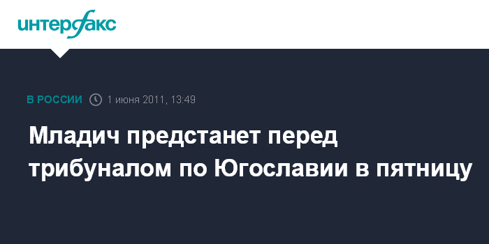 Амстердам. 1 июня. INTERFAX.RU - Бывший военный лидер боснийских сербов Ратко Младич в первый раз предстанет перед Международным трибуналом по бывшей Югославии в пятницу, объявили в суде.