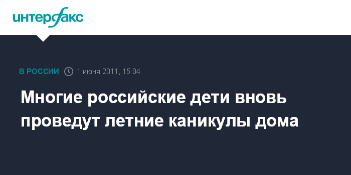 Москва. 1 июня. INTERFAX.RU - В этом году возросло число россиян, которые не могут отправить своих детей на летний отдых, показывают исследования социологов. 44% россиян, опрошенных социологами в преддверии летнего сезона, подтвердили, что в этом году их несовершеннолетние дети и внуки никуда не поедут на летний период и каникулы проведут дома, сообщили в среду "Интерфаксу" в Аналитическом центре Юрия Левады, эксперты которого провели представительный опрос 1600 жителей России.