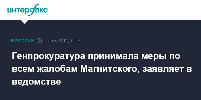 Генпрокуратура принимала меры по всем жалобам Магнитского, заявляет в ведомстве