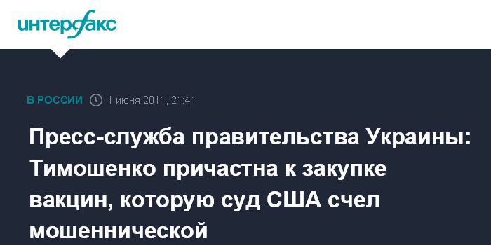 Пресс-служба правительства Украины: Тимошенко причастна к закупке вакцин, которую суд США счел мошеннической