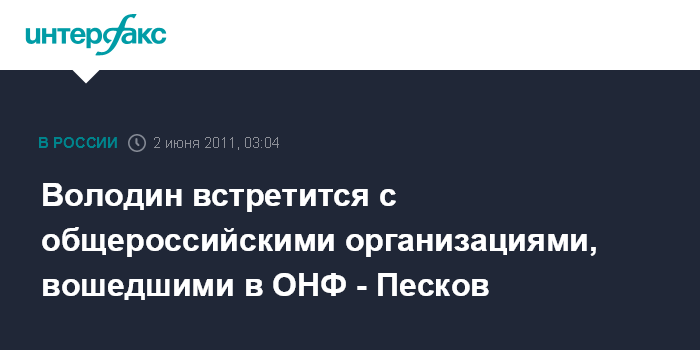 Володин встретится с общероссийскими организациями, вошедшими в ОНФ - Песков