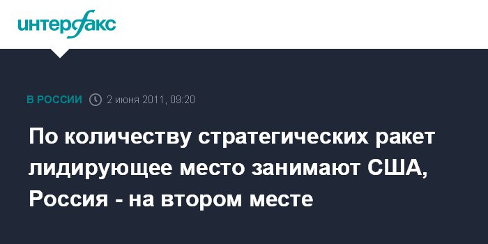 По количеству стратегических ракет лидирующее место занимают США, Россия - на втором месте