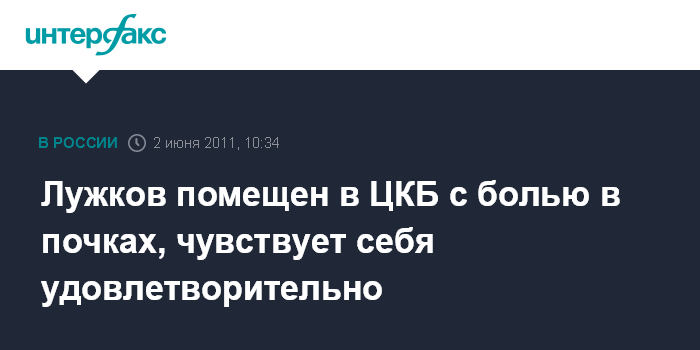 Лужков помещен в ЦКБ с болью в почках, чувствует себя удовлетворительно