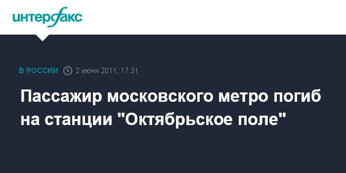Пассажир московского метро погиб на станции "Октябрьское поле"