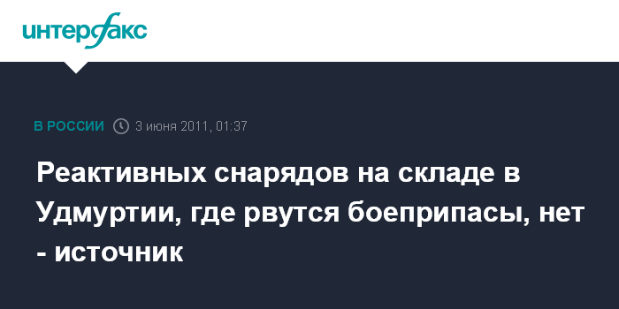 Нижний Новгород. 3 июня.INTERFAX.RU - На территории воинской части в Удмуртии, где происходят взрывы боеприпасов, нет реактивных снарядов.