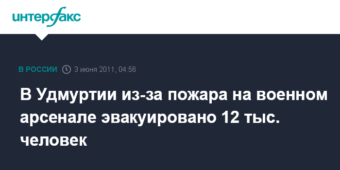 Ижевск. 3 июня. INTERFAX.RU - Спасатели Удмуртии провели эвакуацию жителей из населенных панков близ горящего склада с боеприпасами. "12 тыс. человек эвакуированы", - сообщили агентству "Интерфакс-Поволжье" в пресс-службе ГУ МЧС по Удмуртии.