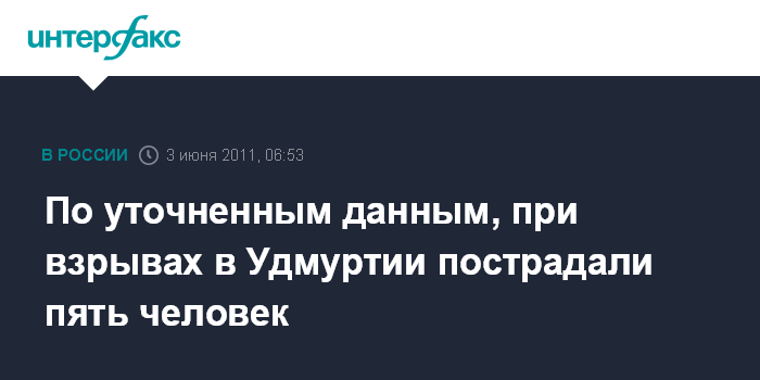 По уточненным данным, при взрывах в Удмуртии пострадали пять человек