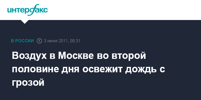 "Атмосферный фронт немного ослабит жару последних дней. Он подойдет к Москве с северо-запада, осадки в Москве ожидаются во второй половине дня", - отметил собеседник агентства.