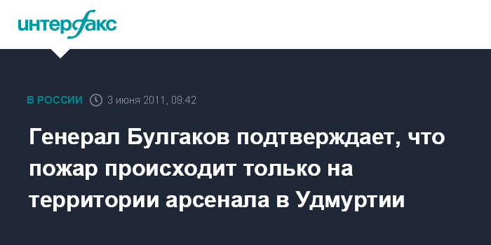 Генерал Булгаков подтверждает, что пожар происходит только на территории арсенала в Удмуртии