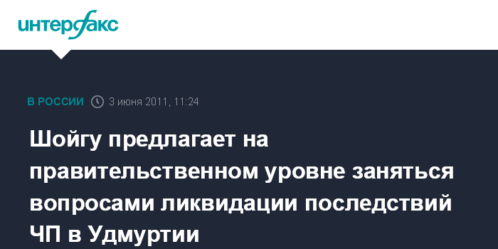 Шойгу предлагает на правительственном уровне заняться вопросами ликвидации последствий ЧП в Удмуртии
