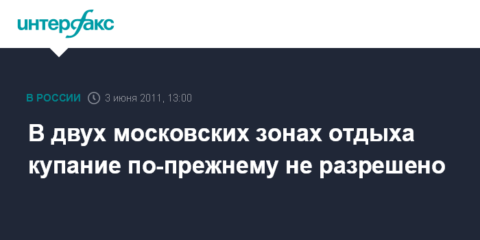 Москва. 3 июня. INTERFAX.RU - В настоящее время в Москве купание разрешено в 9 из 11 зон отдыха, где предусматривается возможность купания, сообщили "Интерфаксу" в пресс-службе столичного управления Роспотребнадзора в пятницу.