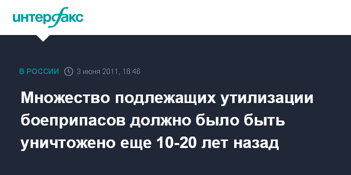 Множество подлежащих утилизации боеприпасов должно было быть уничтожено еще 10-20 лет назад