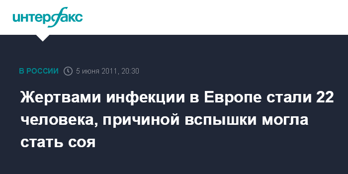 Жертвами инфекции в Европе стали 22 человека, причиной вспышки могла стать соя