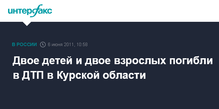 Курск. 6 июня.INTERFAX.RU - ДТП с участием грузовика и легковушки в Хомутовском районе Курской области унесло жизни четырех человек, в том числе двух детей, сообщает пресс-служба регионального управления МЧС.