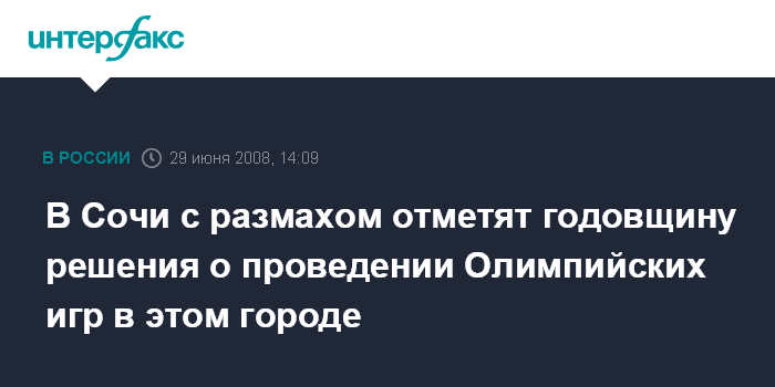 Сочи. 29 июня. ИНТЕРФАКС-ЮГ - В честь годовщины победы в борьбе за право принимать Олимпийские игры 2014 года в Сочи состоится грандиозный праздник.
