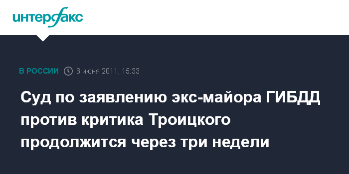 Суд по заявлению экс-майора ГИБДД против критика Троицкого продолжится через три недели