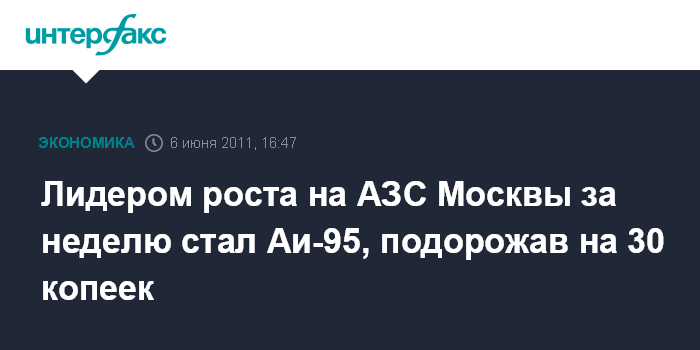 Москва. 6 июня. INTERFAX.RU - Бензин Аи-95 за прошедшую неделю подорожал на 0,3 руб. за литр - до 28,28 руб., сообщила Московская топливная ассоциация (МТА).