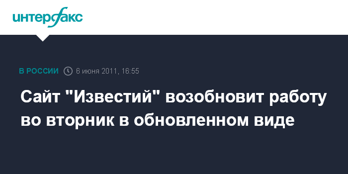 Сайт "Известий" возобновит работу во вторник в обновленном виде