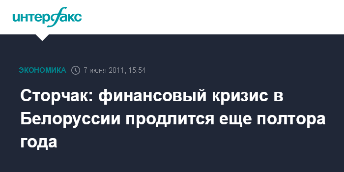 Москва. 7 июня. INTERFAX.RU - Замглавы Минфина Сергей Сторчак считает, что монетарный кризис в Белоруссии закончится года через полтора.