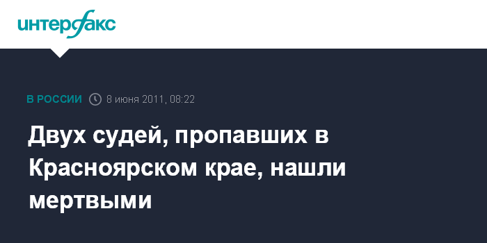 Красноярск. 8 июня. ИНТЕРФАКС-СИБИРЬ - Председателя и администратора суда, пропавших в Балахтинском районе Красноярского края, нашли мертвыми, сообщил агентству "Интерфакс-Сибирь" пресс-секретарь управления судебного департамента Красноярского края Андрей Машкович.