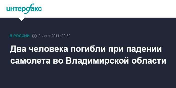 Москва. 8 июня. INTERFAX.RU - Два человека погибли в результате падения самолета Piper во Владимирской области, сообщает главное управление МЧС России по региону.