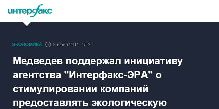 Медведев поддержал инициативу агентства "Интерфакс-ЭРА" о стимулировании компаний предоставлять экологическую отчетность
