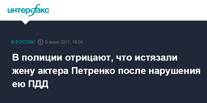 В полиции отрицают, что истязали жену актера Петренко после нарушения ею ПДД