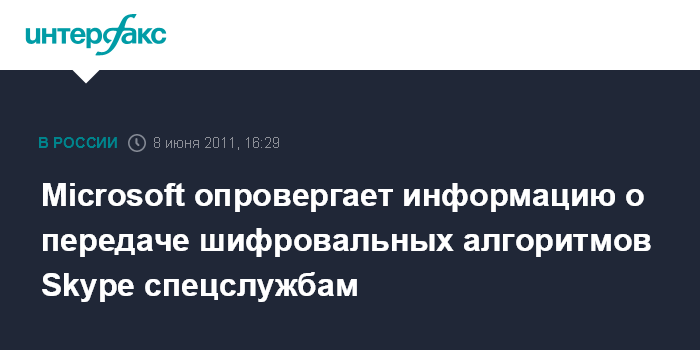 Ранее в СМИ появилась информация, что корпорация, возможно, передаст российским спецслужбам шифровальные алгоритмы Skype. Эта информация неверна.