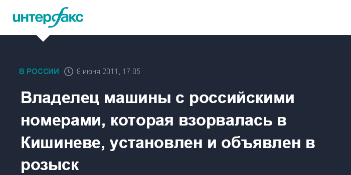 "МВД Молдавии получило ответ от российских коллег, которые установили владельца взорвавшегося автомобиля "Lada - 21012" с московскими номерами. Владелец объявлен в розыск", - сказал премьер.