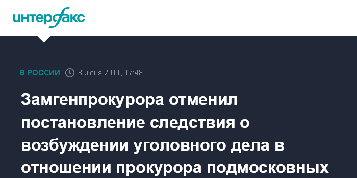 Замгенпрокурора отменил постановление следствия о возбуждении уголовного дела в отношении прокурора подмосковных ОЗЕР