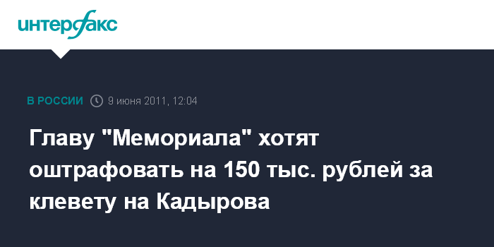 Главу "Мемориала" хотят оштрафовать на 150 тыс. рублей за клевету на Кадырова