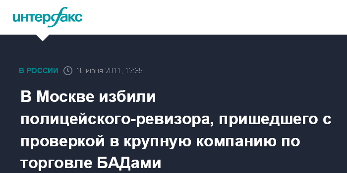 Москва. 10 июня. INTERFAX.RU - Неизвестные избили сотрудника полиции во время проверки крупной сетевой компании, торгующей БАДами, и уничтожили часть документов, сообщил "Интерфаксу" источник в правоохранительных органах в пятницу.