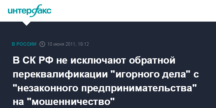 В СК РФ не исключают обратной переквалификации "игорного дела" с "незаконного предпринимательства" на "мошенничество"