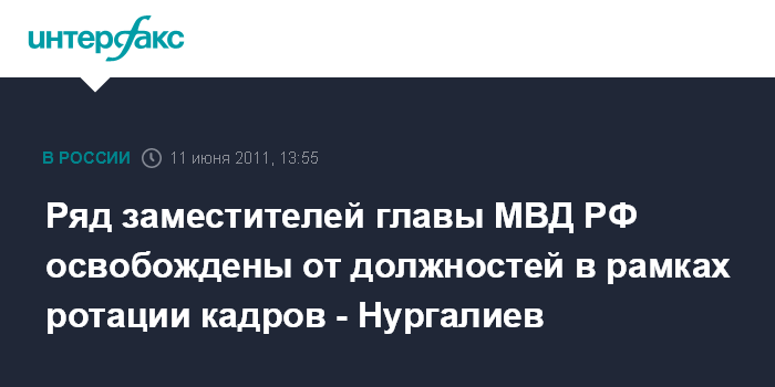 Ряд заместителей главы МВД РФ освобождены от должностей в рамках ротации кадров - Нургалиев