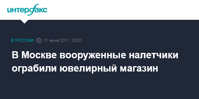 Москва. 11 июня. INTERFAX.RU - На северо-западе Москвы в субботу вечером совершено ограбление ювелирного магазина.