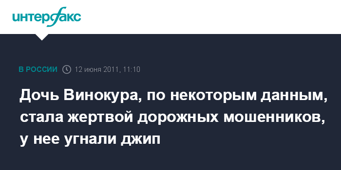 Москва. 12 июня. INTERFAX.RU - У артистки балета Большого театра России угнали внедорожник в центре Москвы, сообщил "Интерфаксу" источник в правоохранительных органах в воскресенье. Пострадавшая, по некоторым данным, является дочерью артиста Владимира Винокура.