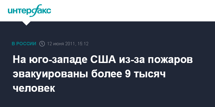 Вашингтон. 12 июня. INTERFAX.RU - Более 9,1 тыс. жителей штата Аризона, на юго-западе США, были вынуждены покинуть свои дома из-за сильных лесных пожаров, сообщает в воскресенье американский телеканал Си-Эн-Эн. По данным синоптиков, дым от пожаров распространяется на восток Аризоны в сторону штата Нью-Мексико.