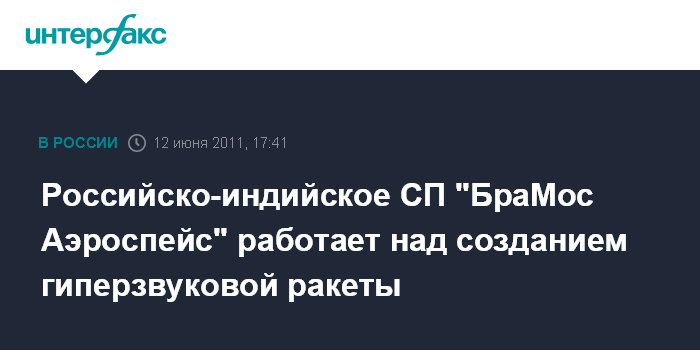 Российско-индийское СП "БраМос Аэроспейс" работает над созданием гиперзвуковой ракеты