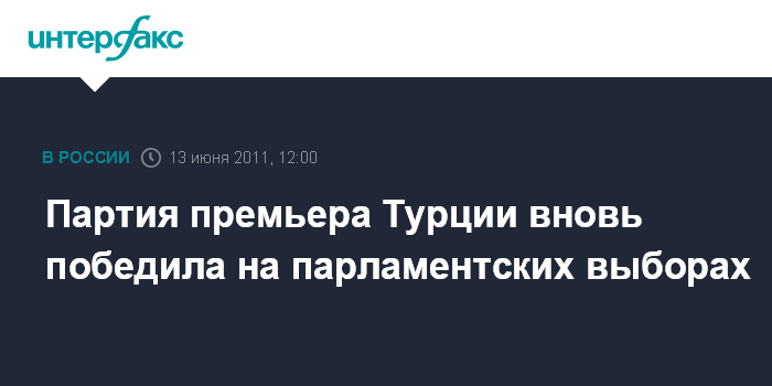 Лондон. 13 июня. INTERFAX.RU - Премьер-министр Турции Реджеп Тайип Эрдоган после победы своей партии Справедливости и развития (АКП) на парламентских выборах в воскресенье пообещал строить консенсус с оппозиционными партиями, сообщает в понедельник Би-би-си. АКП получила около 50% голосов, что дает ей около 325 депутатских мандатов из 550 - на пять меньше числа, необходимого для так называемого "супербольшинства" в две трети мандатов, позволяющего в одностороннем порядке вносить изменения в конституцию страны.