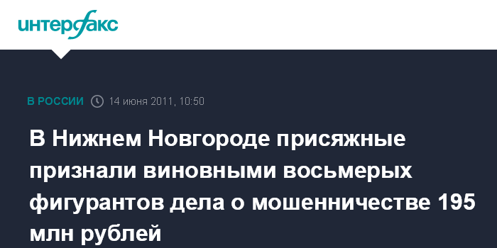 В Нижнем Новгороде присяжные признали виновными восьмерых фигурантов дела о мошенничестве 195 млн рублей