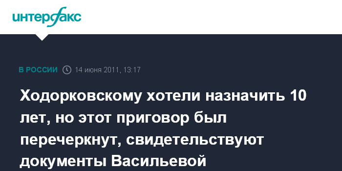 Ходорковскому хотели назначить 10 лет, но этот приговор был перечеркнут, свидетельствуют документы Васильевой