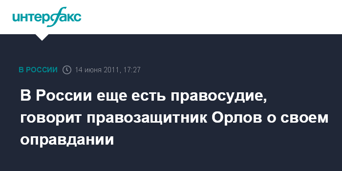 "Я счастлив. Я счастлив не за себя, а за то, что у нас еще есть правосудие", - сказал Орлов "Интерфаксу" сразу после того, как стало известно решение суда.