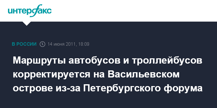 Санкт-Петербург. 14 июня. INTERFAX.RU - В связи с проведением Петербургского международного экономического форума вносятся коррективы в маршруты автобусов и троллейбусов, сообщила пресс-служба городского комитета по транспорту.