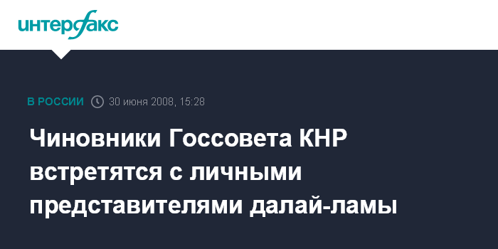 Москва. 30 июня. INTERFAX.RU - Представители соответствующих ведомств центрального правительства КНР в начале июля встретятся с личными представителями далай-ламы по его просьбе, говорится в сообщении представителя Госсовете КНР.