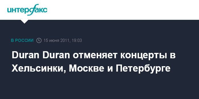 "Члены группы вынуждены отменить три шоу предстоящего европейского турне, которые должны были состояться в субботу в Хельсинки, во вторник, 21 июня, в Москве и 23 июня в Санкт-Петербурге из-за проблем с голосом у главного вокалиста Саймона Ле Бона", - говорится в релизе.