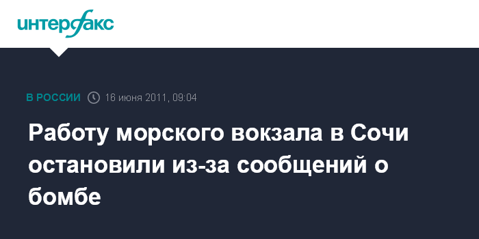 "Около 8:00 мск на телефон спасательной службы Сочи поступил анонимный звонок с сообщением о минировании здания морского вокзала", - сообщил агентству "Интерфакс-Юг" руководитель управления МЧС по Сочи Николай Шустов.