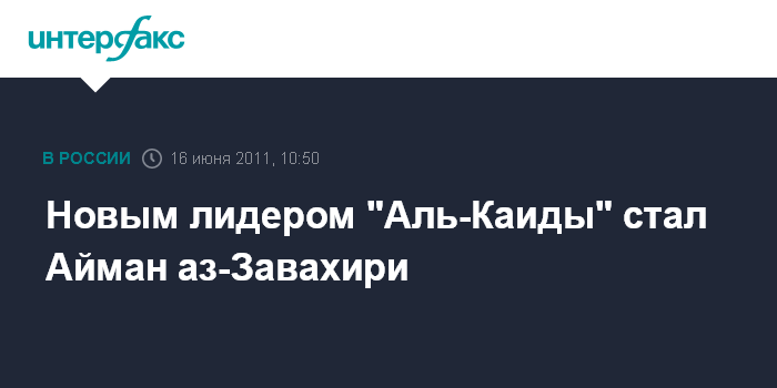 Лондон. 16 июня. INTERFAX.RU - Египтянин Айман аз-Завахири, по данным некоторых СМИ, назначен главой террористической группировки "Аль-Каида", передает в четверг телерадиокорпорация BBC.