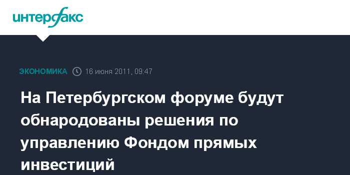 На Петербургском форуме будут обнародованы решения по управлению Фондом прямых инвестиций
