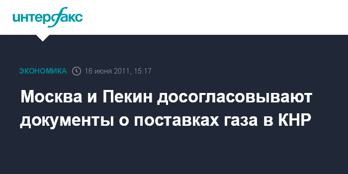 Москва. 16 июня. INTERFAX.RU - Россия и Китай завершают согласование договоренностей в газовой сфере, которые станут основой сотрудничества двух стран по газу на десятилетия вперед, заявил президент РФ Дмитрий Медведев.